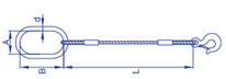 產品型號 | 鋼絲繩直徑d (mm) | 額定載荷 (kn) | 吊環參數A×B×d (mm) | 吊鉤 | ||