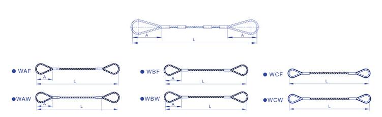 | 產品型號 | 鋼絲繩直徑  (mm)  | 額定載荷 | 近似套長 A (mm)  | ||||||