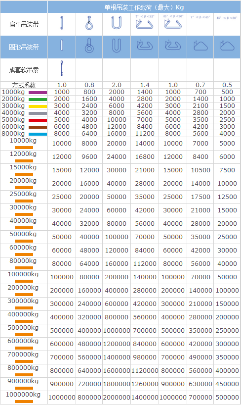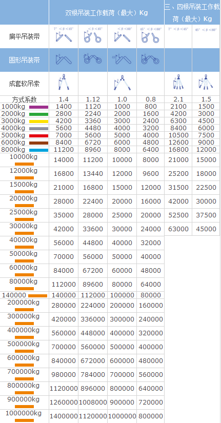 吊裝帶的最大工作載荷與吊裝方式有很大的關(guān)系,吊裝角度不同,其吊裝最大工作載荷也不同。